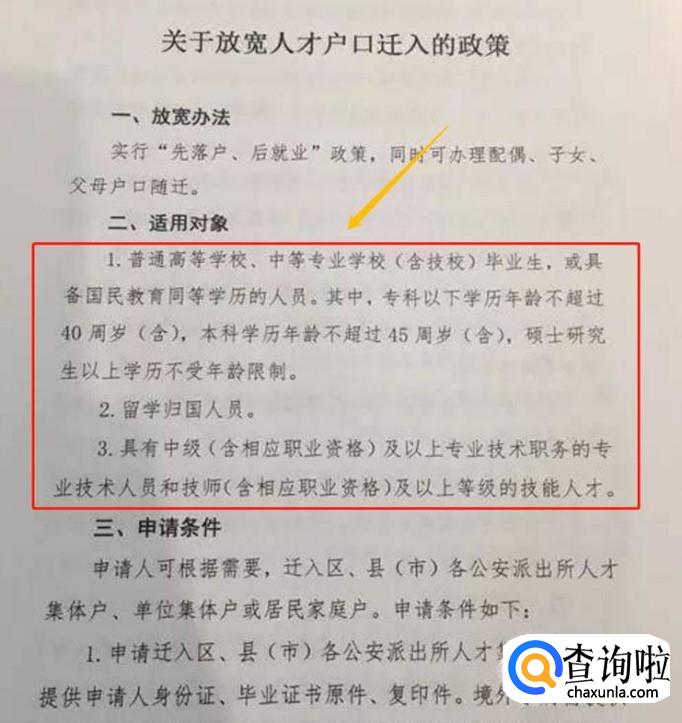什么样的人才可以申请这次的落户呢?以下是官方公布的落户条件: