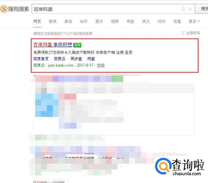 首先打开搜狗浏览器,搜索“百度网盘”,进入官网。