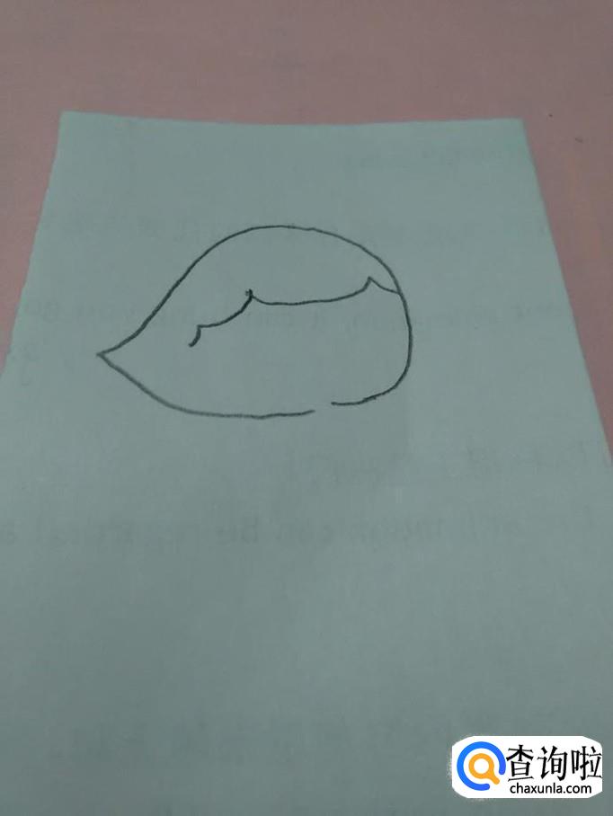 在刘海下面,左右各画一个半圆形,表示耳朵,在耳朵下面,左右各画一条弧线,表示脸型。
