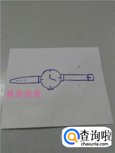 在右侧表带的右方画一个长方形和一条短线,表示表带末端的卡子,手表就画完了。