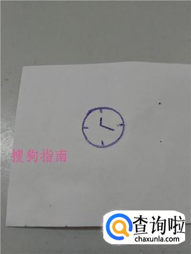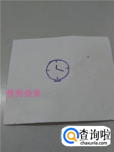 在圆形的中间画一长一短两条线,表示表针。
