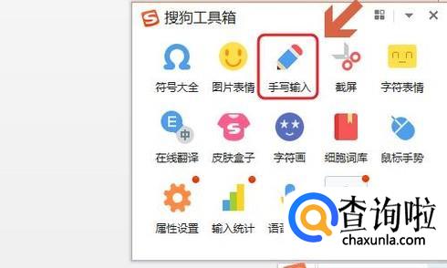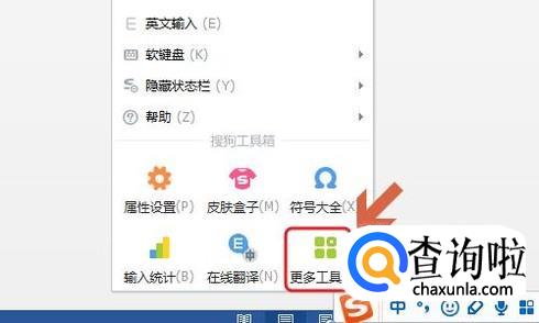 接着输入法状态栏左侧会弹出一个窗口,我们点击该窗口右下角的“更多工具”,然后在搜狗工具箱列表里即可看到“手写输入”功能了;