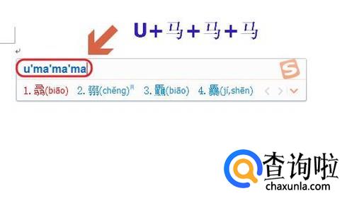 首先在输入栏输入字母“u”,然后依次输入汉字的每一个组成部分,比如说我们要识别“骉”这个字,那么连续输入u+马+马+马,这样系统就会自动显示所有相近的文字了,如下图所示...
