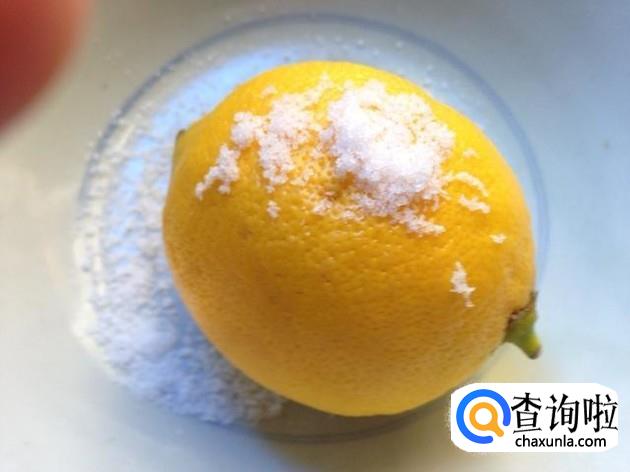 首先我们需要用清水把柠檬清洗干净后,用盐把柠檬的表皮进行搓洗,这样子清洗的柠檬会比较干净。