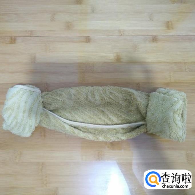 把右侧沿中缝向左翻折(根据毛巾的长短)2到3次。