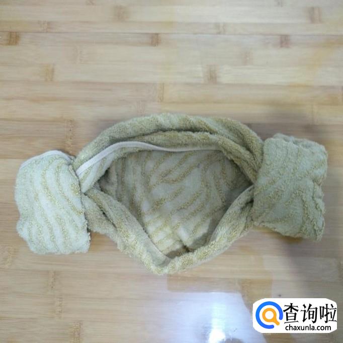 最后从毛巾的中缝打开,戴在头上就可以了。