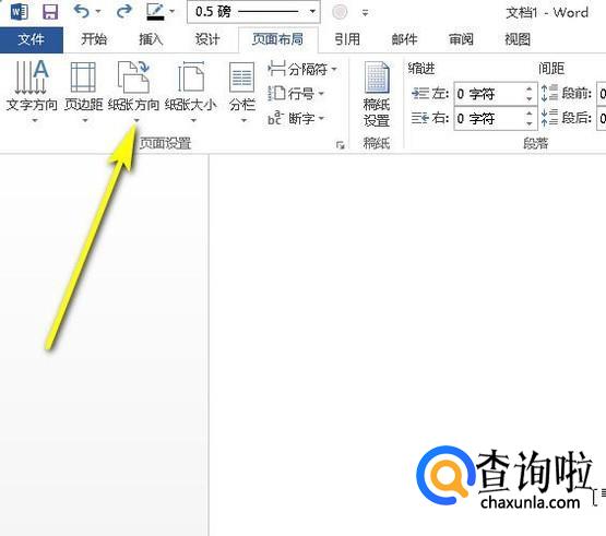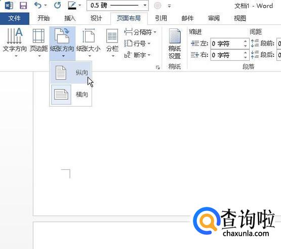 这时,光标会自动跳到第二页的开始位置。假设,我们想把第二页设置为横向的。那么,就在页面布局这个选项卡里,再点:纸张方向的下拉按钮。