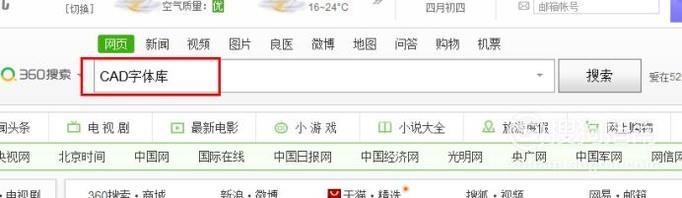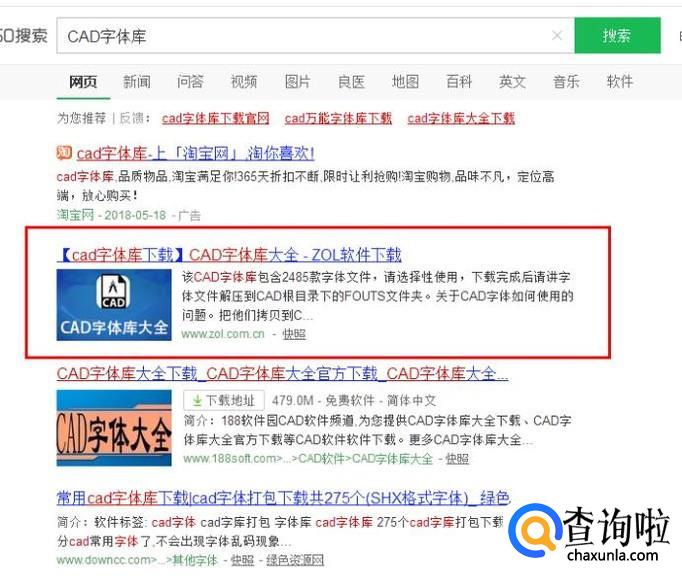 打开浏览器,输入“CAD字体库”,进行搜索。