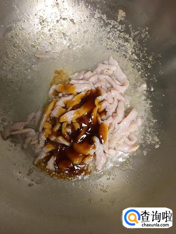 油锅烧热,把处理好的里脊肉丝放入锅中,翻炒至变色。