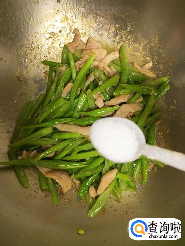 继续大火翻炒1分钟左右,炒至豆角熟透后加入1小勺盐调味。