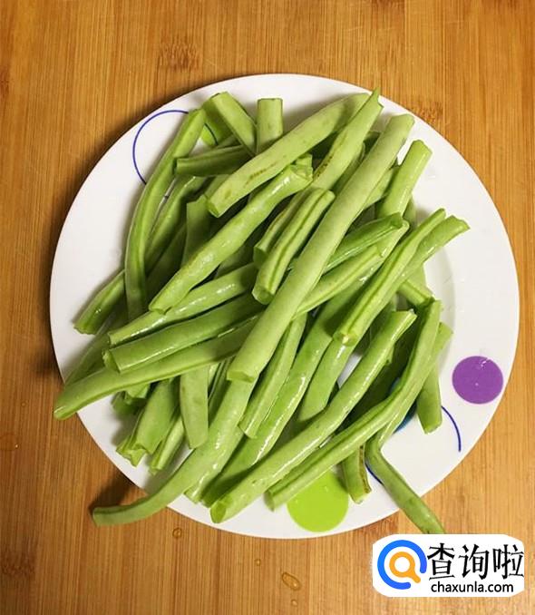 豆角掐去两头,清洗干净后沥干水分放入盘中。