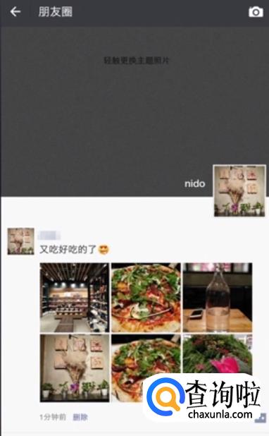 最后回到我们的朋友圈,你就可以看到自己发的东西了。