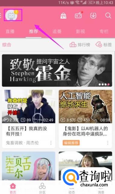 打开手机安装哔哩哔哩,如图。