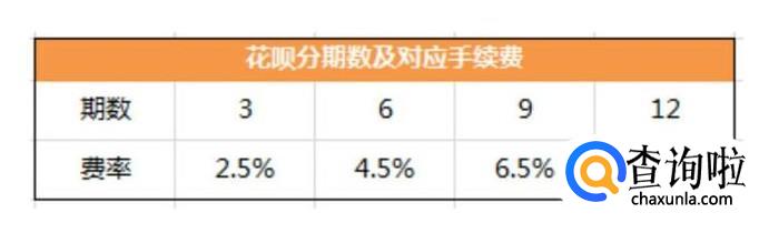 蚂蚁花呗分期有3期、6期、9期、12期,每期的费率分别是:2.3%、4.5%、6.5%、7.5%,费率和银行卡差不多。
