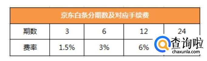 京东白条分期可以分为3期、6期、12期、24期,每期的费率分别是1.5%、3%、6%、12%,相对于蚂蚁花呗,前3期的费率还是比较低的,所以更多时候可以选择京东白条。