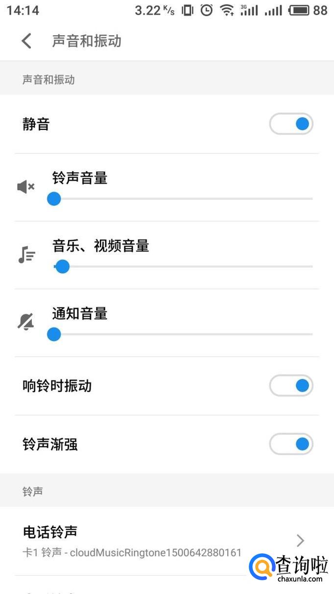 进入声音和振动界面,我们能够看到不同模块的音量大小。