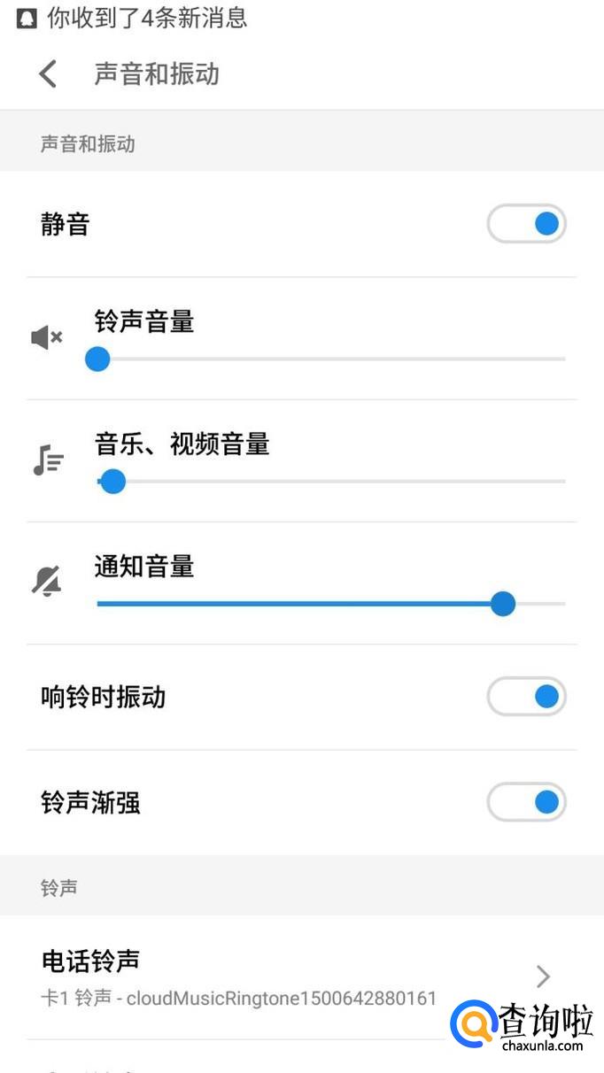 此外,在手机通知栏中,你还可以快速设置静音/振动模式,按手机音量+-也能够进行调整。