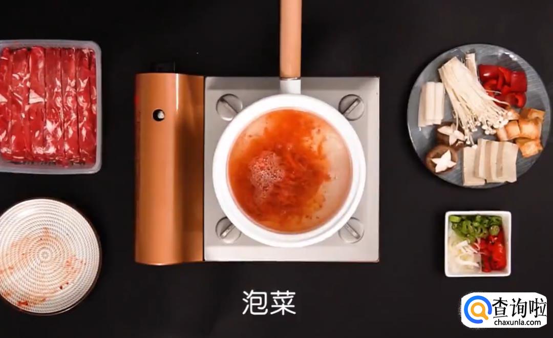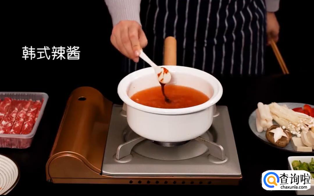 起锅烧水,放入辣白菜、韩式辣酱搅匀。