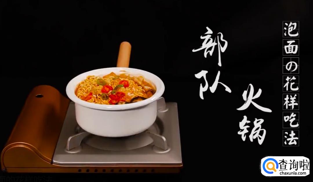 部队火锅:泡面、辣白菜、豆腐、葱、尖椒、韩式辣椒、香菇、年糕、鱼豆腐、金针菇、甜椒、辛拉面调料、肥牛卷