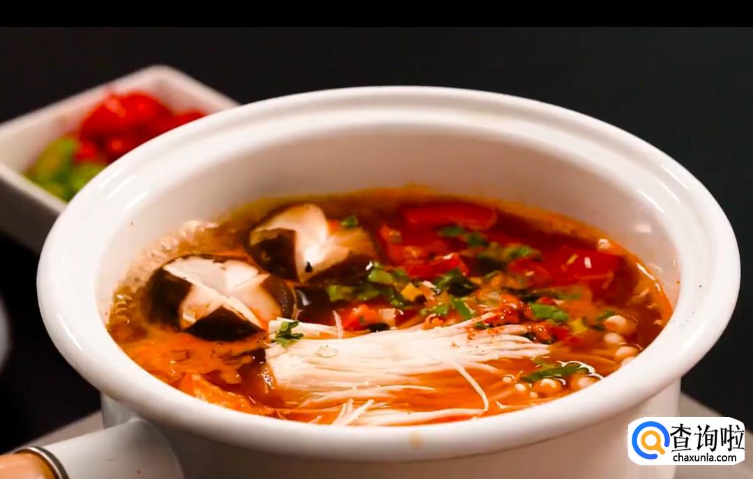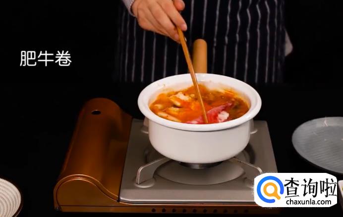 接着,放入豆腐、香菇、年糕、鱼豆腐、金针菇、甜椒、辛拉面调料包,煮开后,放入肥牛卷、泡面饼、尖椒、葱,这样一锅部队火锅就做好了。