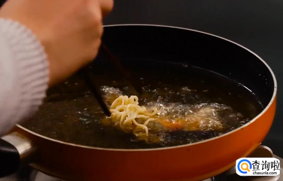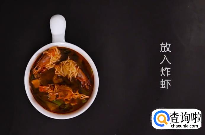 最后放入炸虾,这样一碗炸虾泡面就做好了。