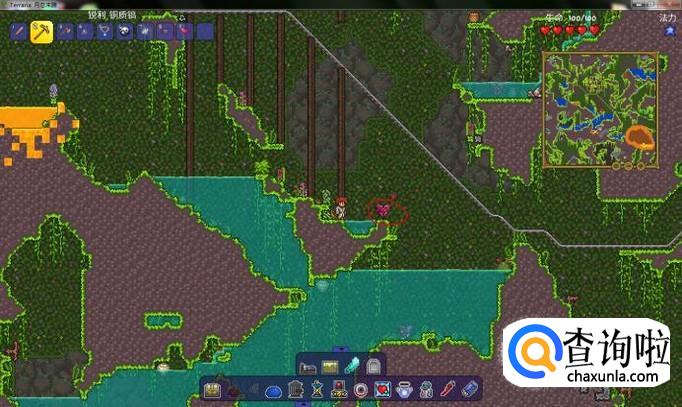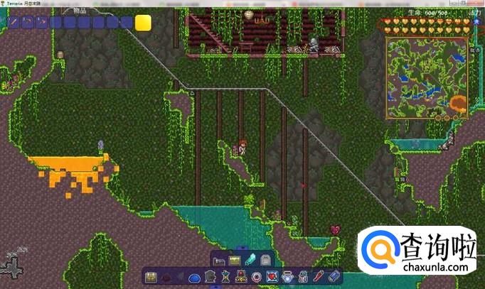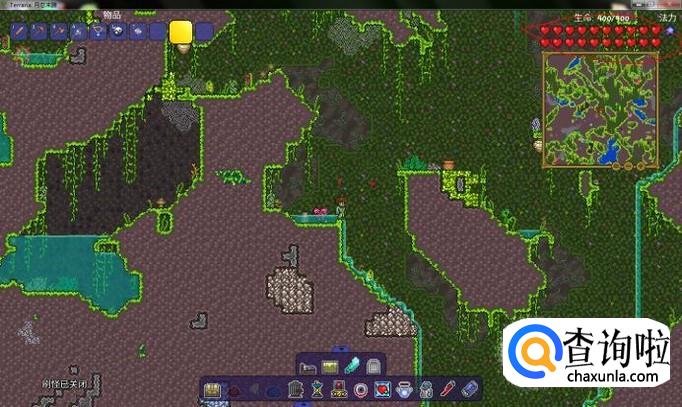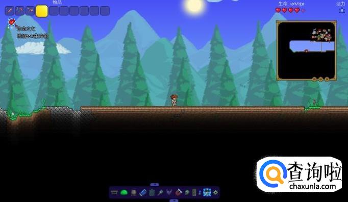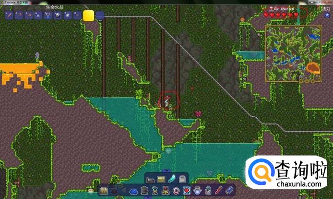 首先,我们需要在地下找到生命水晶,,挖掉它会掉落生命水晶,使用它可以永久获得二十生命上限,最高可以提升到400血,如图所示