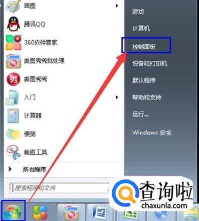 点击电脑右下角的开始按键,然后找到“控制面板”,点击并进入,如图所示。