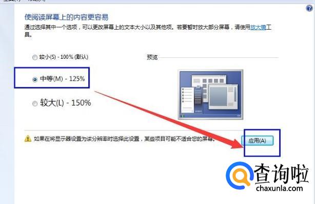 选择中等大小的字号,然后点击“应用”即可,如图所示。