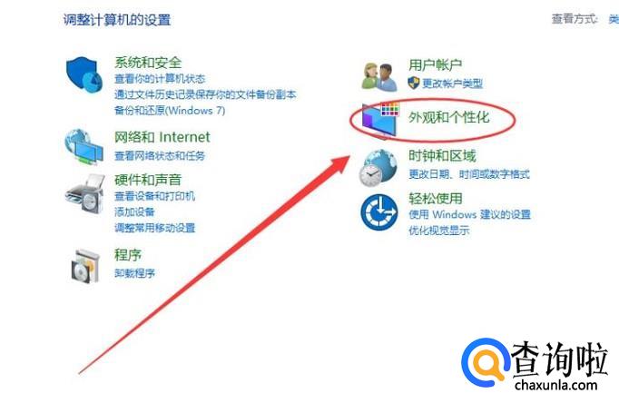 进入到控制面板界面,点击“外观和个性化”,如图所示。