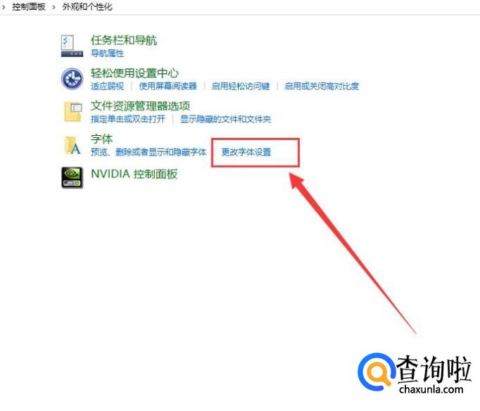 进入下一界面之后,点击“更改字体设置”,如图所示。