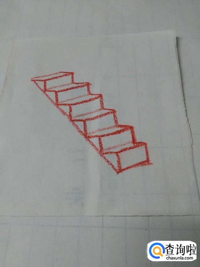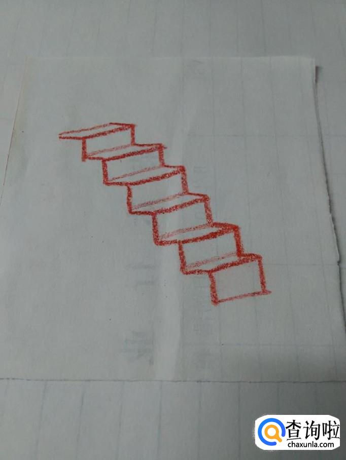 最后,用一条长长的直线将左边折线连接起来,楼梯就画完了。