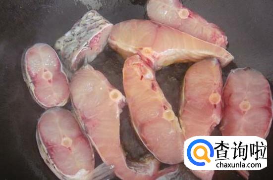 热锅下油,把鱼块摆到锅里用小火煎。