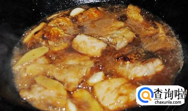 然后加1小碗水进去,加适量的生抽、几滴老抽、蒜米、姜片、小米辣,1勺辣椒油用小火焖3分钟左右就可以了。