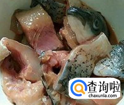 把草鱼清理干净,切成一块块,然后加适量的盐、姜片、生抽料酒腌制一下。