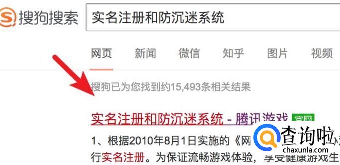 打开搜狗搜索,输入‘实名注册和防沉迷系统’,点击打开第一个站点。