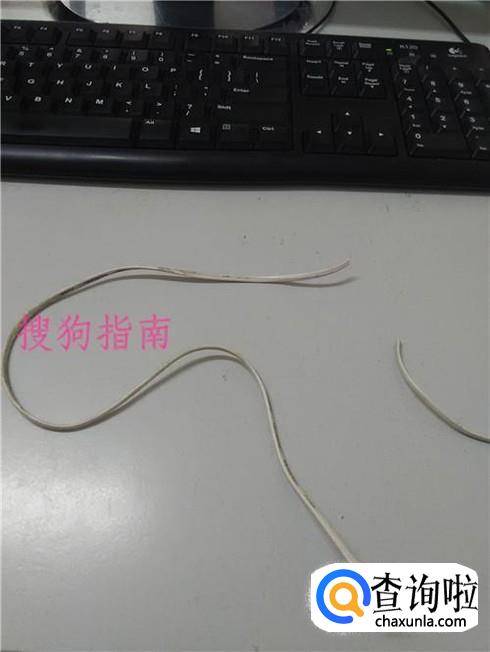 用剪刀将绳套剪开,告诉大家这是中间的那个手套,其实是离一侧绳子头五公分左右的绳套。