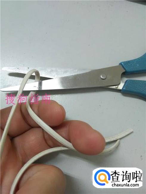 借故去拿剪刀,就把右手的两个绳子头放在左手中的同时,将左手绳子套攥在手心儿里,把右手其中一个绳子头圈出一个套来,从外面看还是一个绳子套和两个绳子头,其实这个绳子套是其中一根绳子圈起来的,离绳头大约五公分左右。