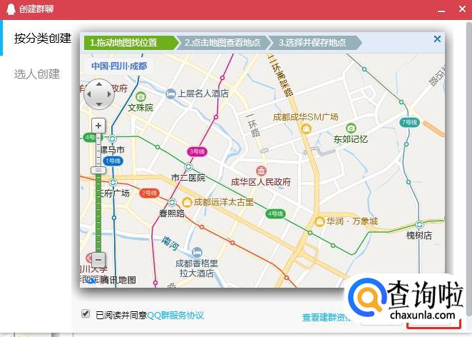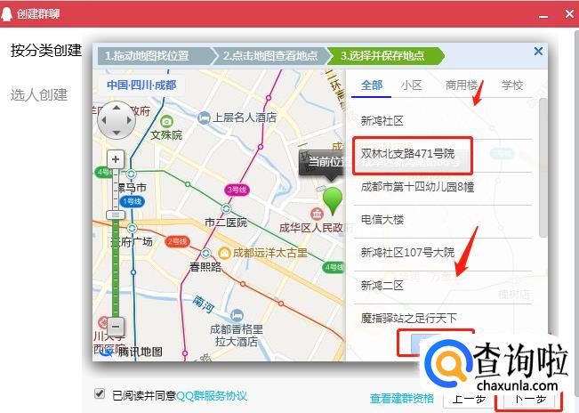 群地点的填写,可在弹出的地图框上选择所在位置,随后点击【保存地点】。