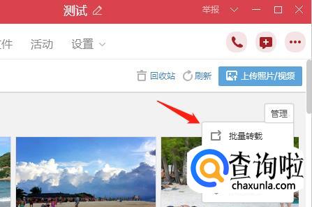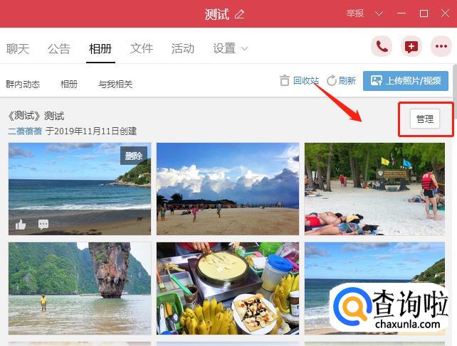 进入相册以后点击右上角的【管理】就可以找到批量下载的选项。
