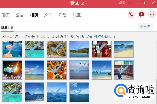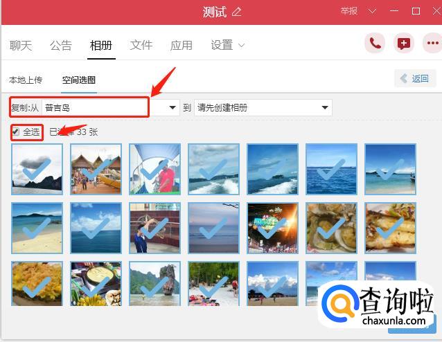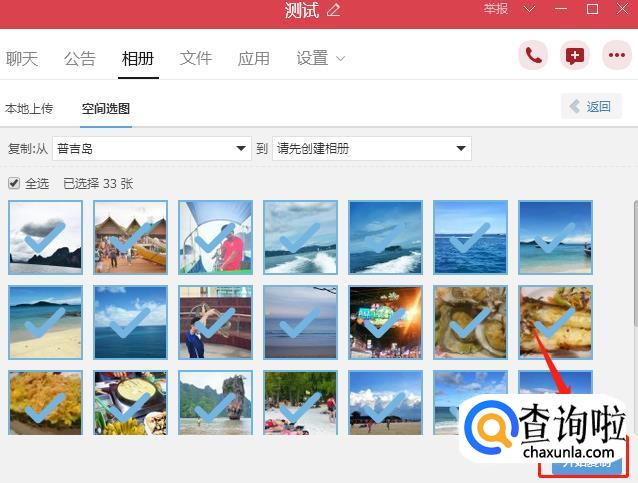 选中你要保存的整个相册,就可以把图片都复制到群相册了。