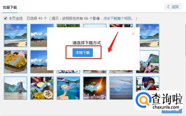 在你的浏览器会弹出一个下载链接,里面是整个相册的压缩包,点击【本地下载】。这样就可以快速的把所有图片保存下来,然后把群相册删除就可以了。