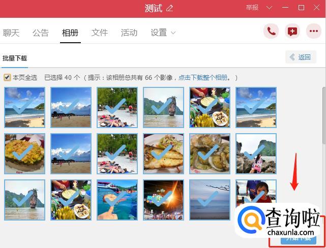 点击【批量下载】、【下载整个相册】。