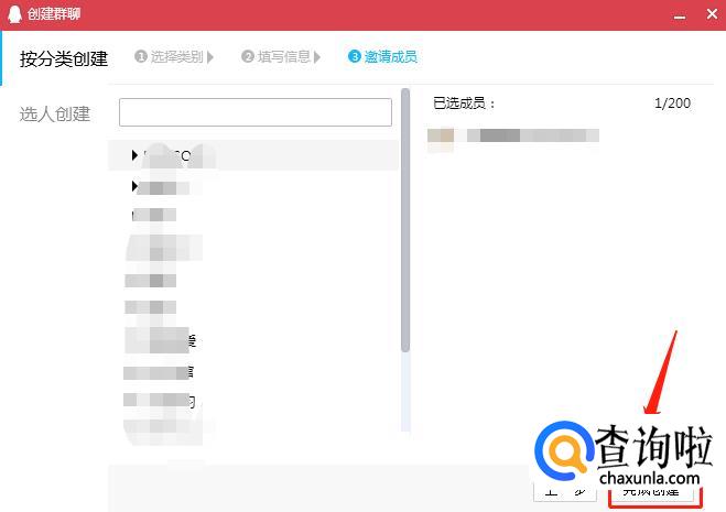 进入“邀请成员”页面,可以不邀请任何成员,直接点击【完成创建】,如果相册还要与其他朋友分享,可以在联系人列表里面邀请他们加入群聊。