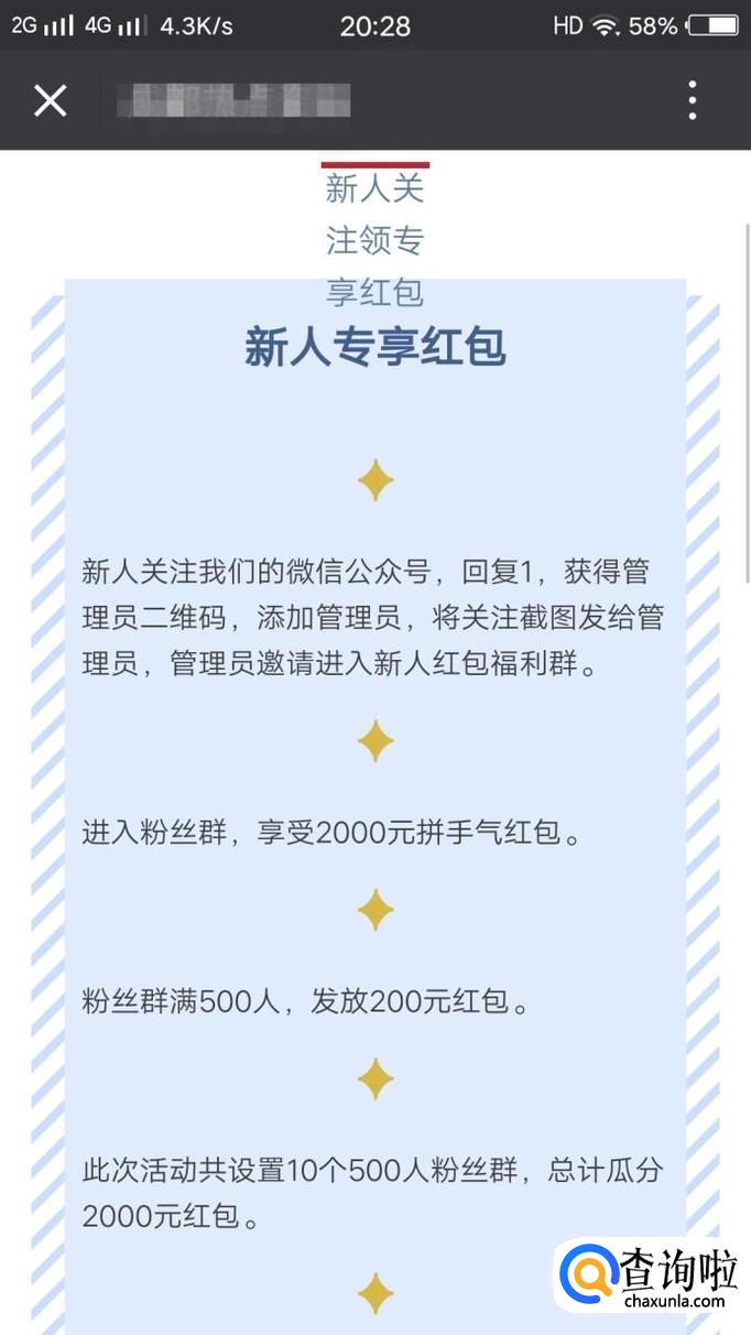 在搜索结果中点击一篇文章,然后按着里面的操作提示就可以得到微信红包,如图所示。