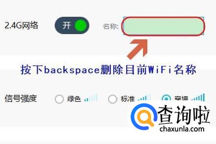点击进入以后,可以看到目前该WiFi的名称是什么,将鼠标光标定位在此位置,按下backspace将目前的名称删除;