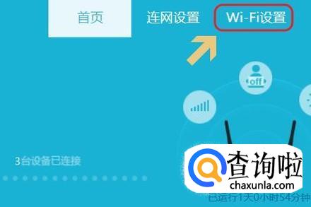 打开路由器地址以后,我们找到“WiFi设置”或者相关的选项,如图所示...