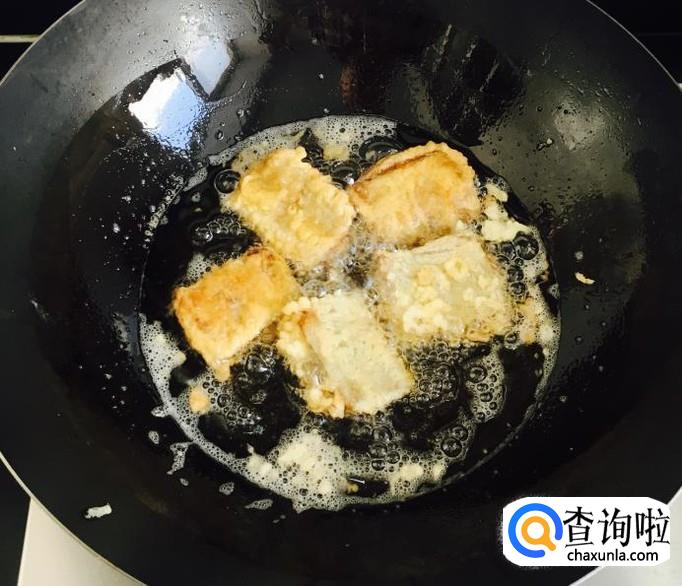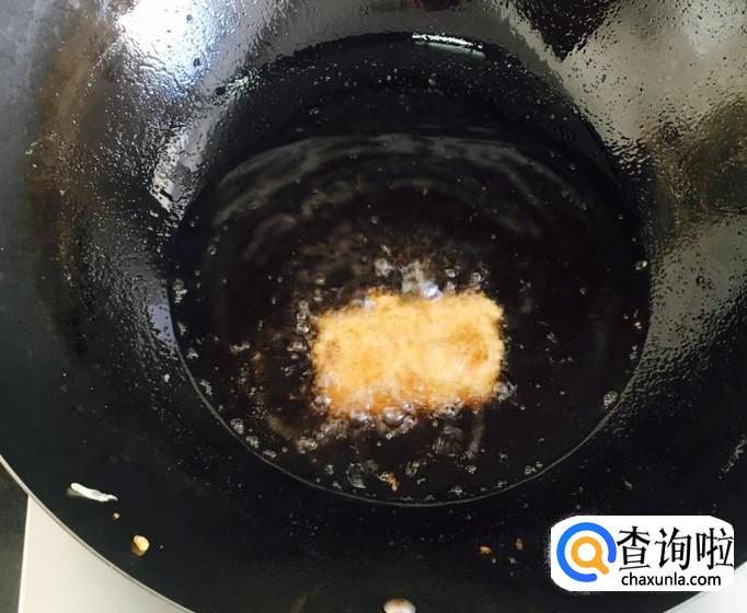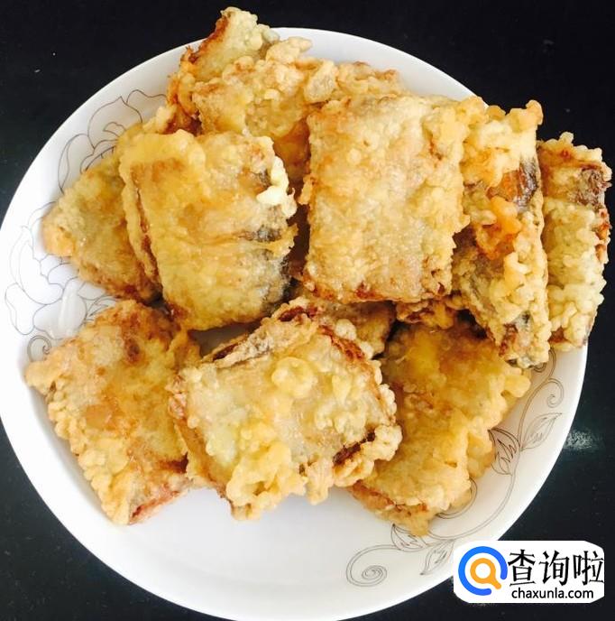 锅中加油烧热把带鱼蘸上面糊开始炸制