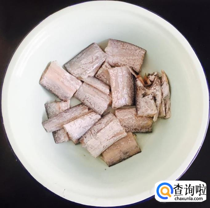 带鱼剪掉头、尾和背部的鱼鳍,去除内脏洗净后剪成段