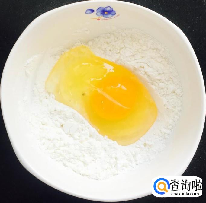 碗中加入适量的淀粉和面粉,打入一个鸡蛋搅拌均匀成糊状