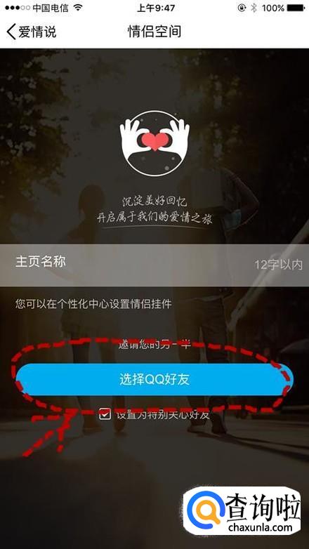 再点击邀请情侣,进入后点击邀请QQ好友,对方接受就好了